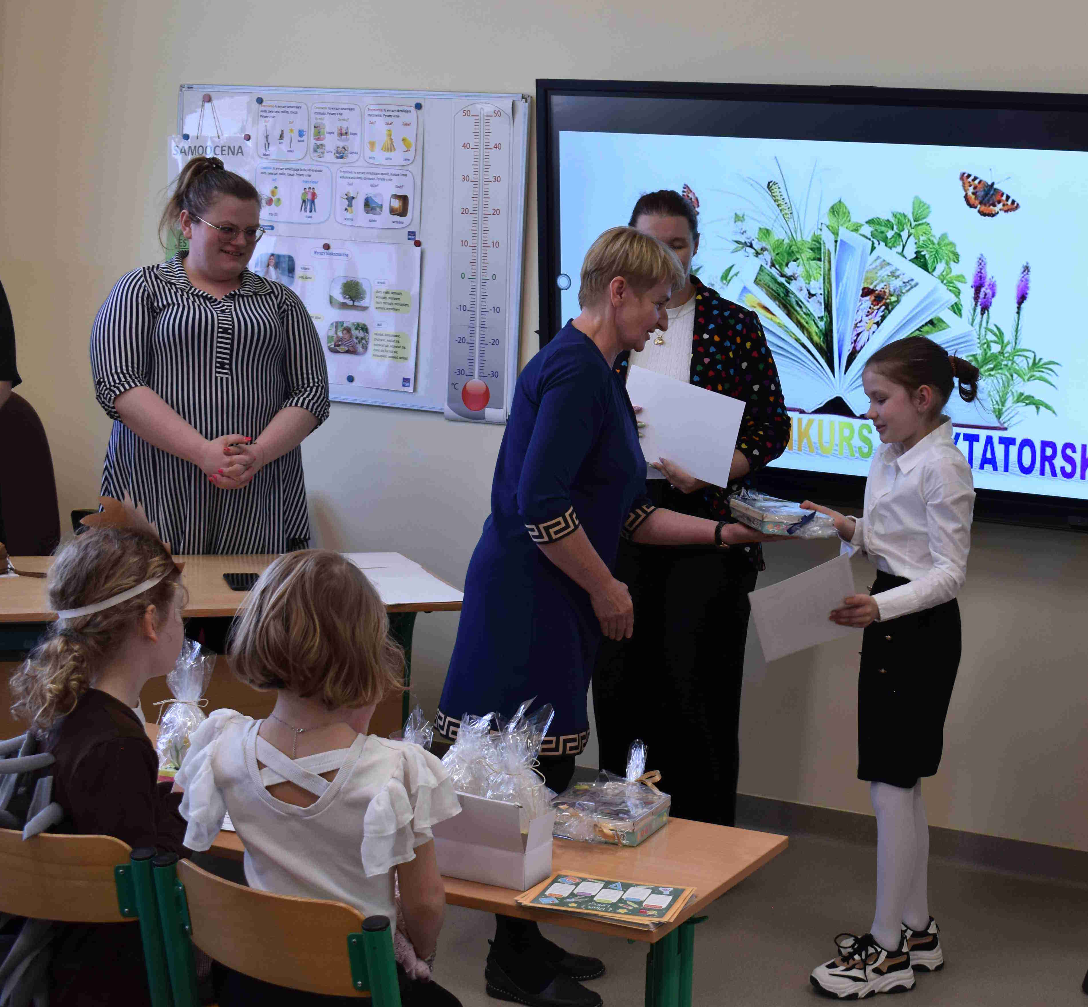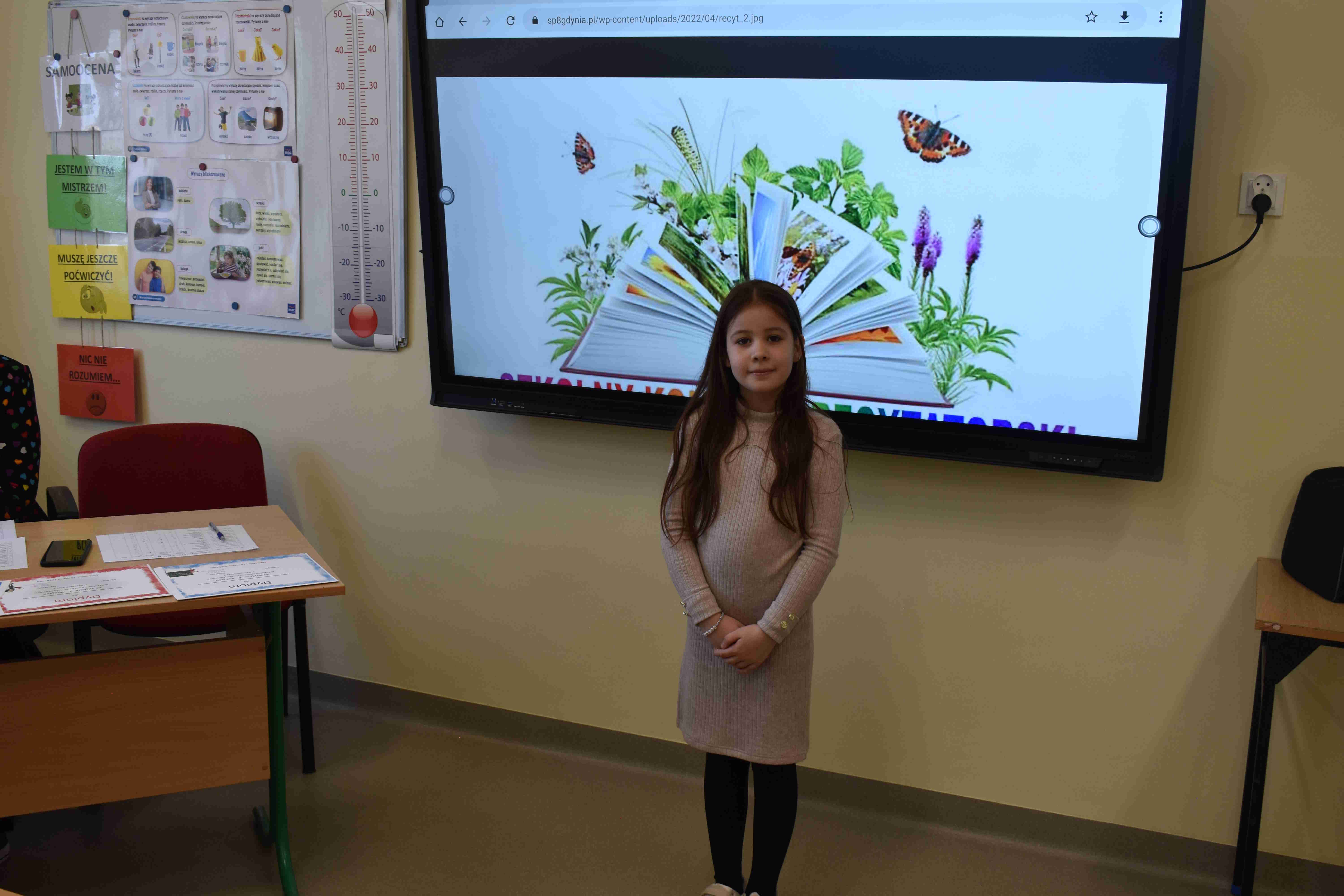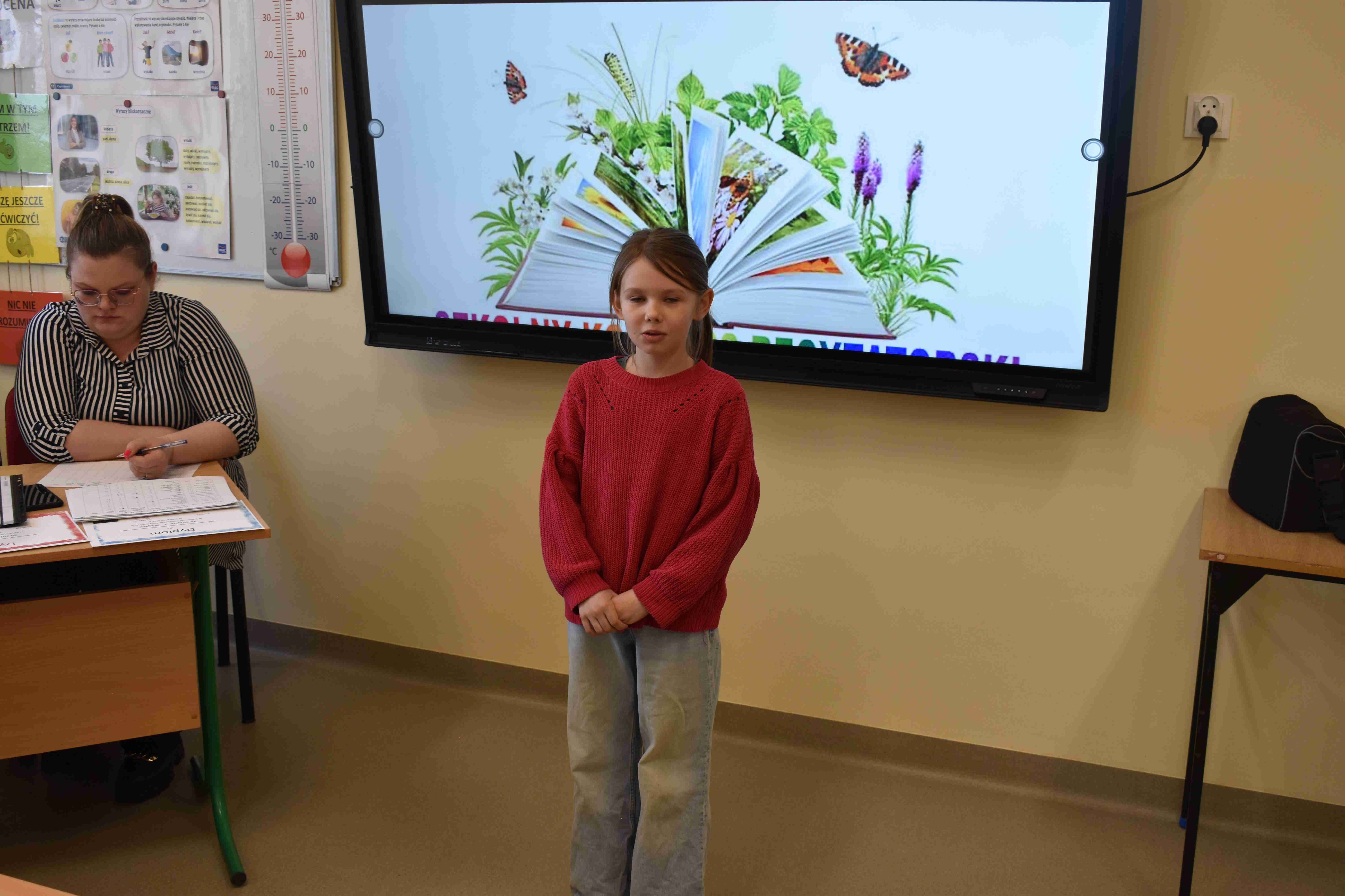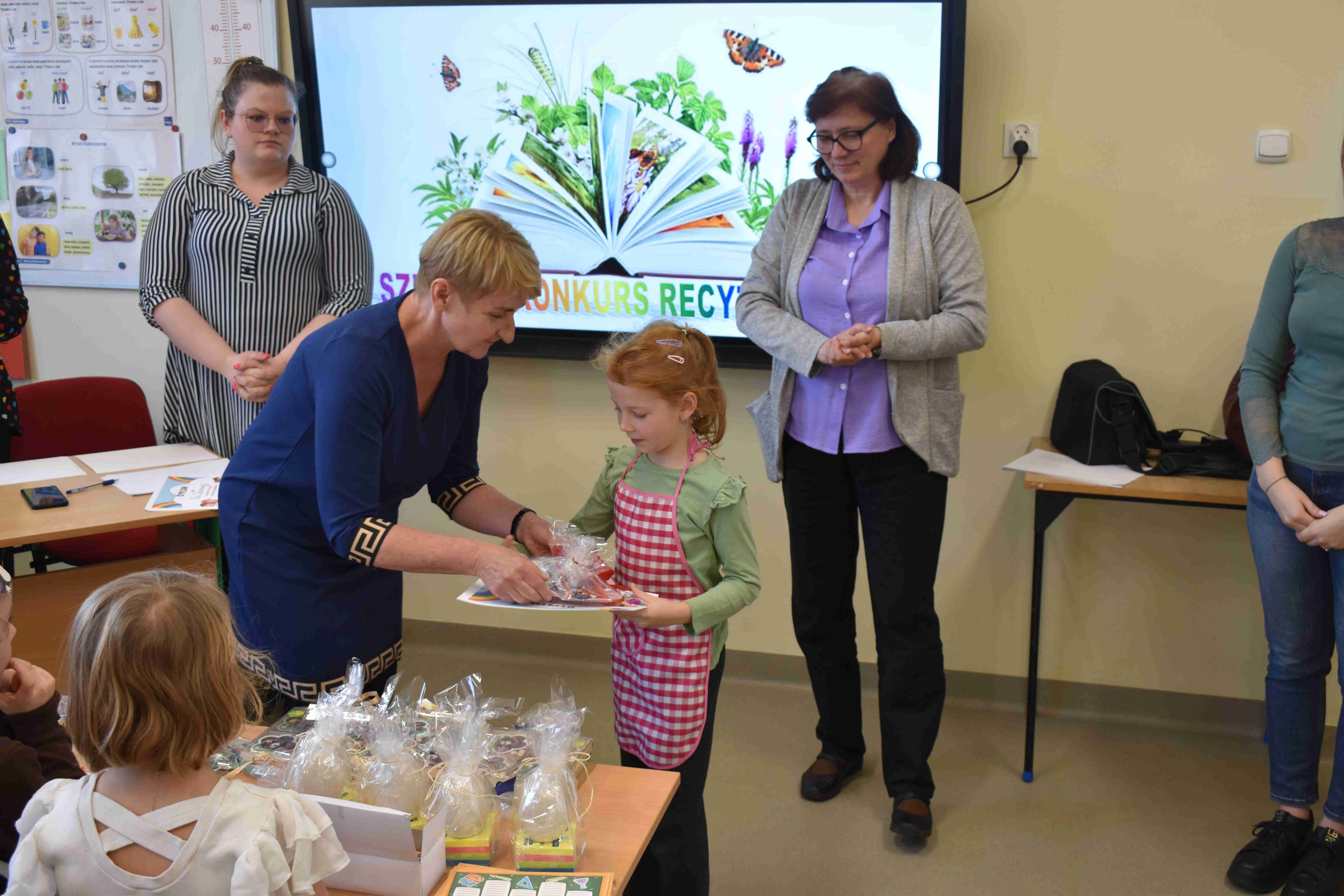 klas 1–4. Wydarzenie cieszyło się dużym zainteresowaniem – wzięło w nim udział wielu uczestników, którzy z ogromnym zaangażowaniem prezentowali wybrane przez siebie wiersze. Celem konkursu było rozwijanie zdolności recytatorskich, kształtowanie wrażliwości na piękno języka ojczystego oraz zachęcanie dzieci do wystąpień publicznych. Uczniowie zachwycili jury oraz publiczność swoją interpretacją utworów, dykcją oraz odwagą sceniczną. Wszyscy uczestnicy zasługują na ogromne brawa za włożony wysiłek i przygotowanie. Na zakończenie konkursu wręczono nagrody oraz dyplomy dla najlepszych recytatorów.