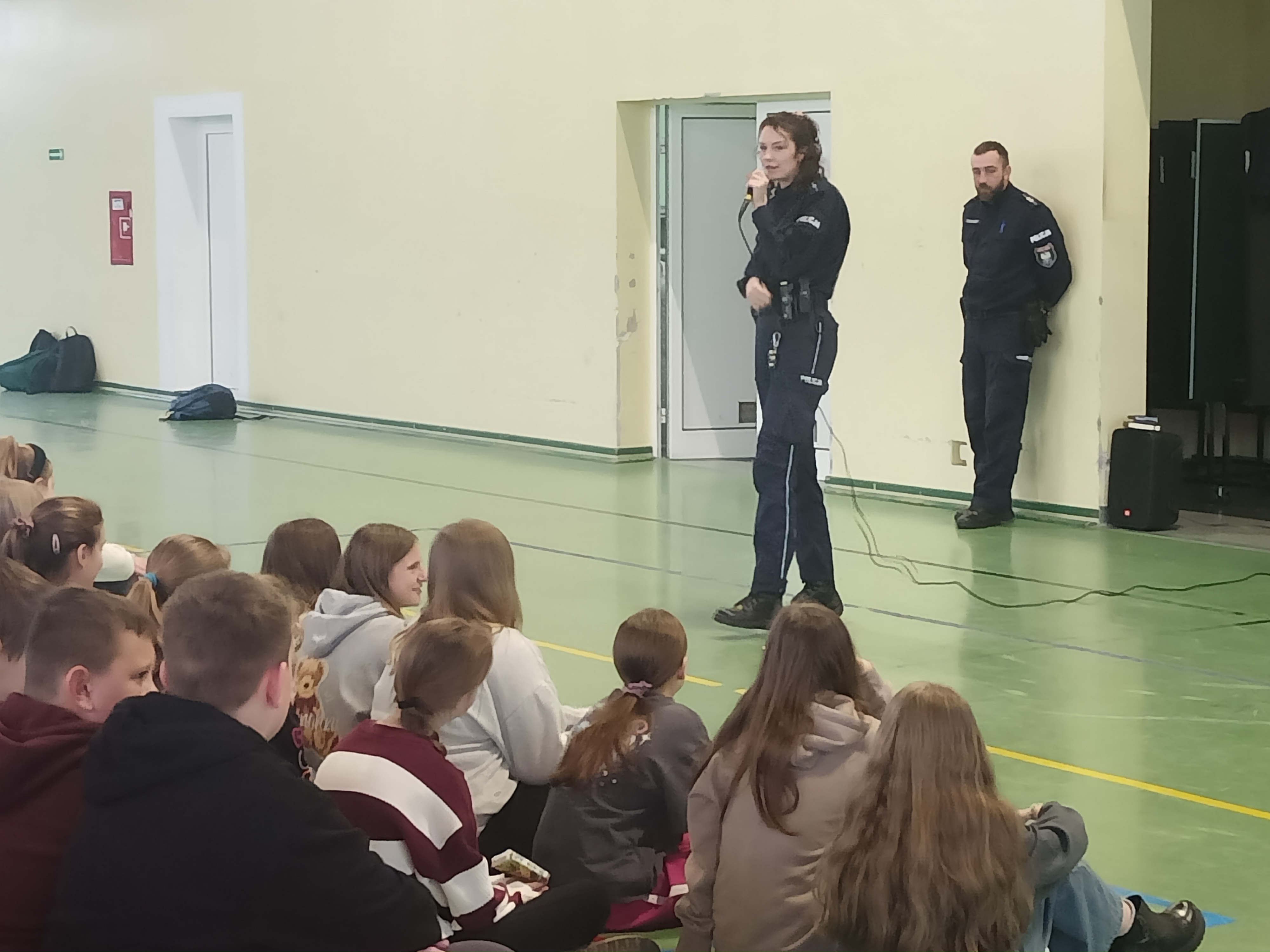 W poniedziałek 8 grudnia klasy V - VIII wzięły udział w spotkaniu z przedstawicielami Komendy Powiatowej Policji w Ostrzeszowie. Zajęcia dotyczyły bezpieczeństwa i właściwych zachowań. Młodszy aspirant Eliza Rybczak i aspirant Sebastian Zmyślony (dzielnicowy naszej gminy) poruszyli przede wszystkim tematy związane z bezpiecznym poruszaniem się hulajnogami. Przedstawili też młodzieży zagadnienia związane z odpowiedzialnością, także karną i bezpieczeństwem w Internecie.