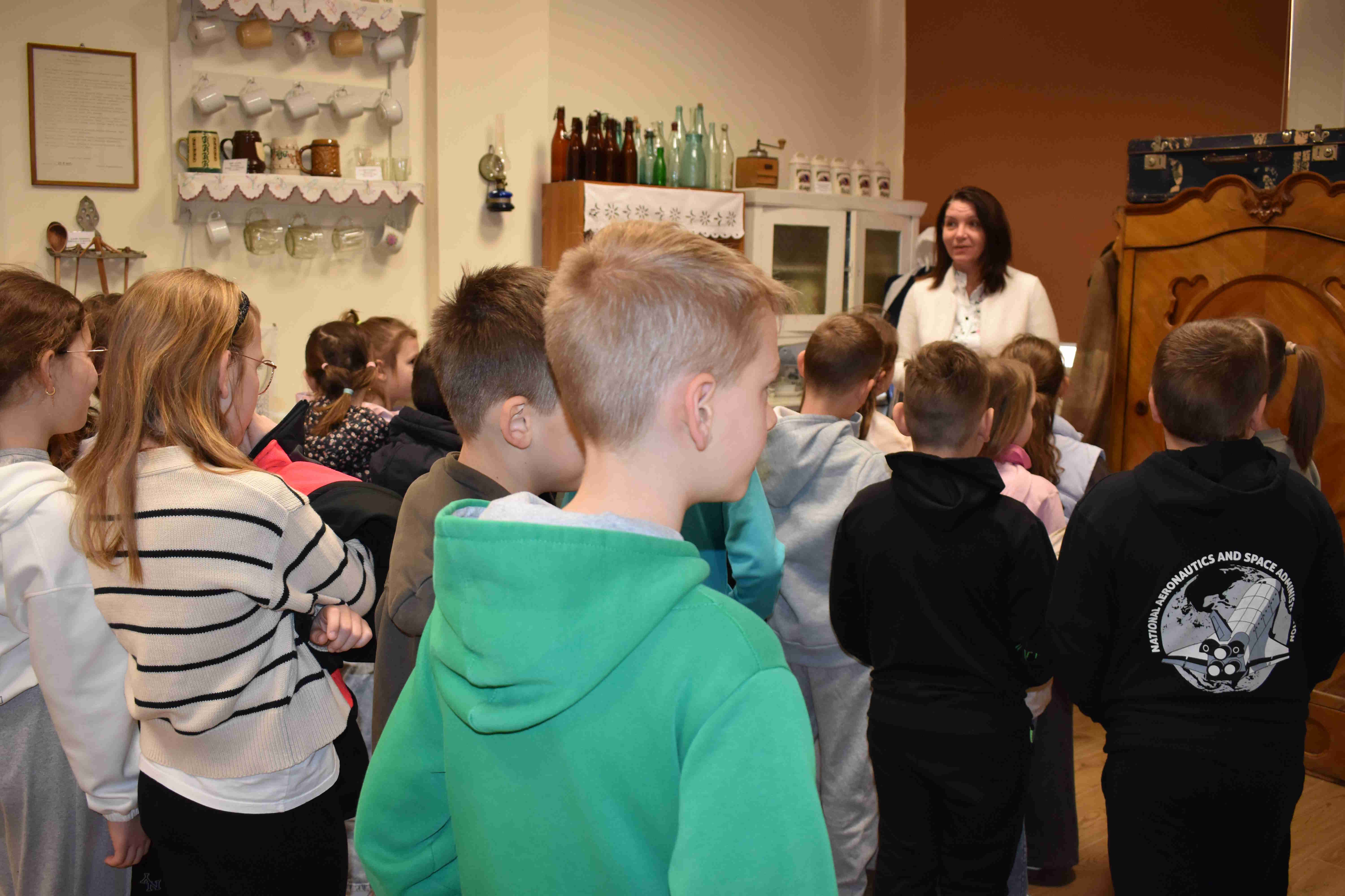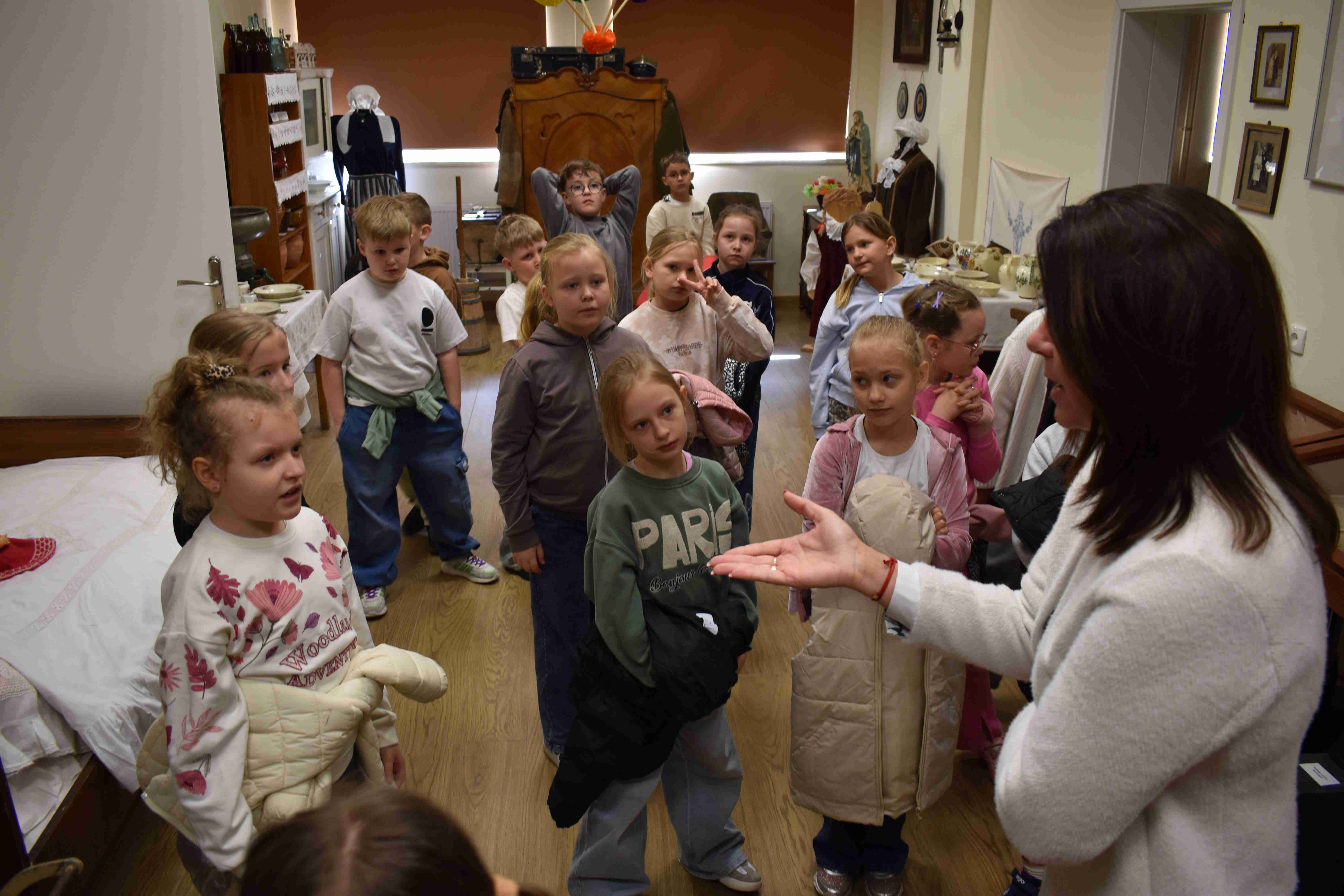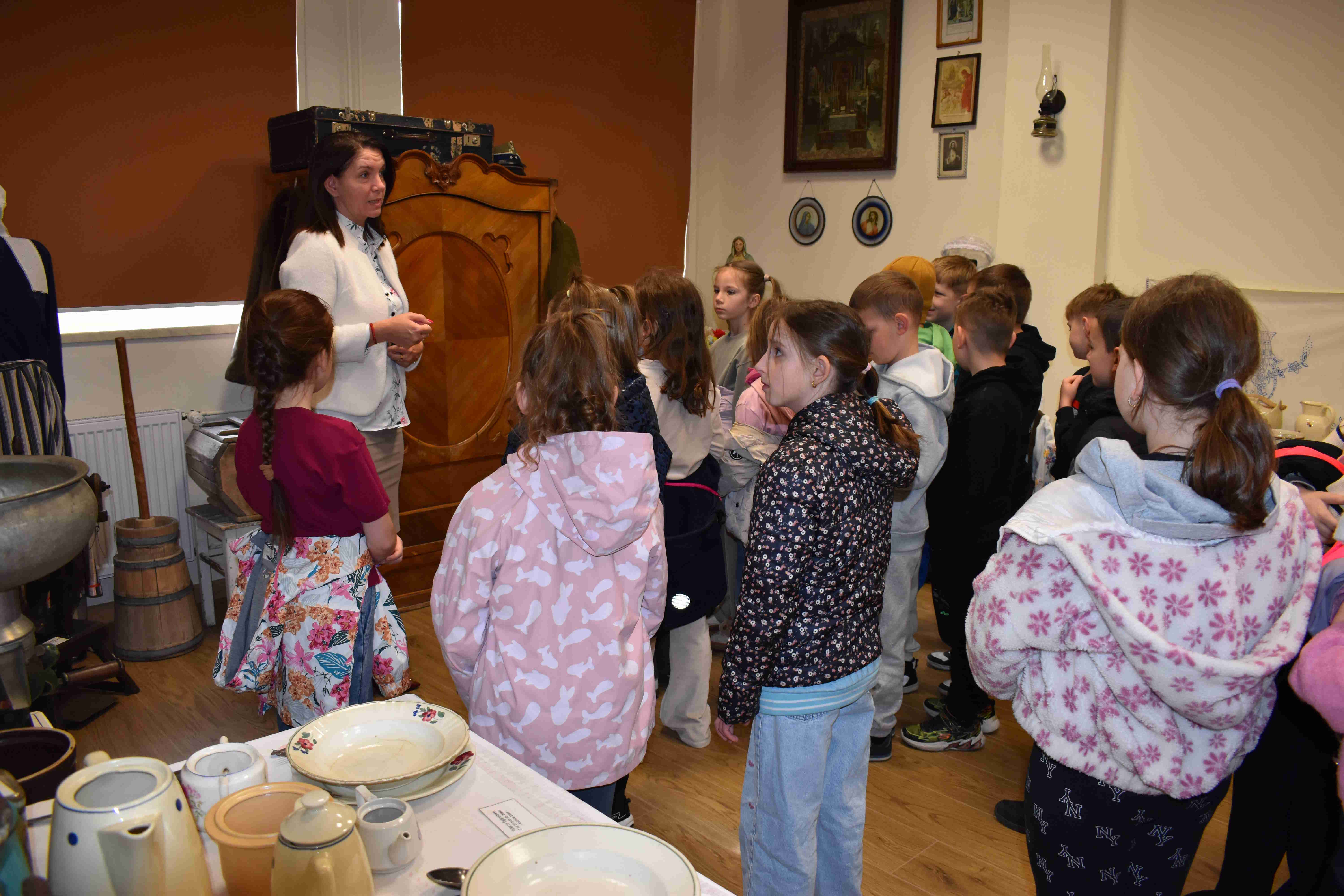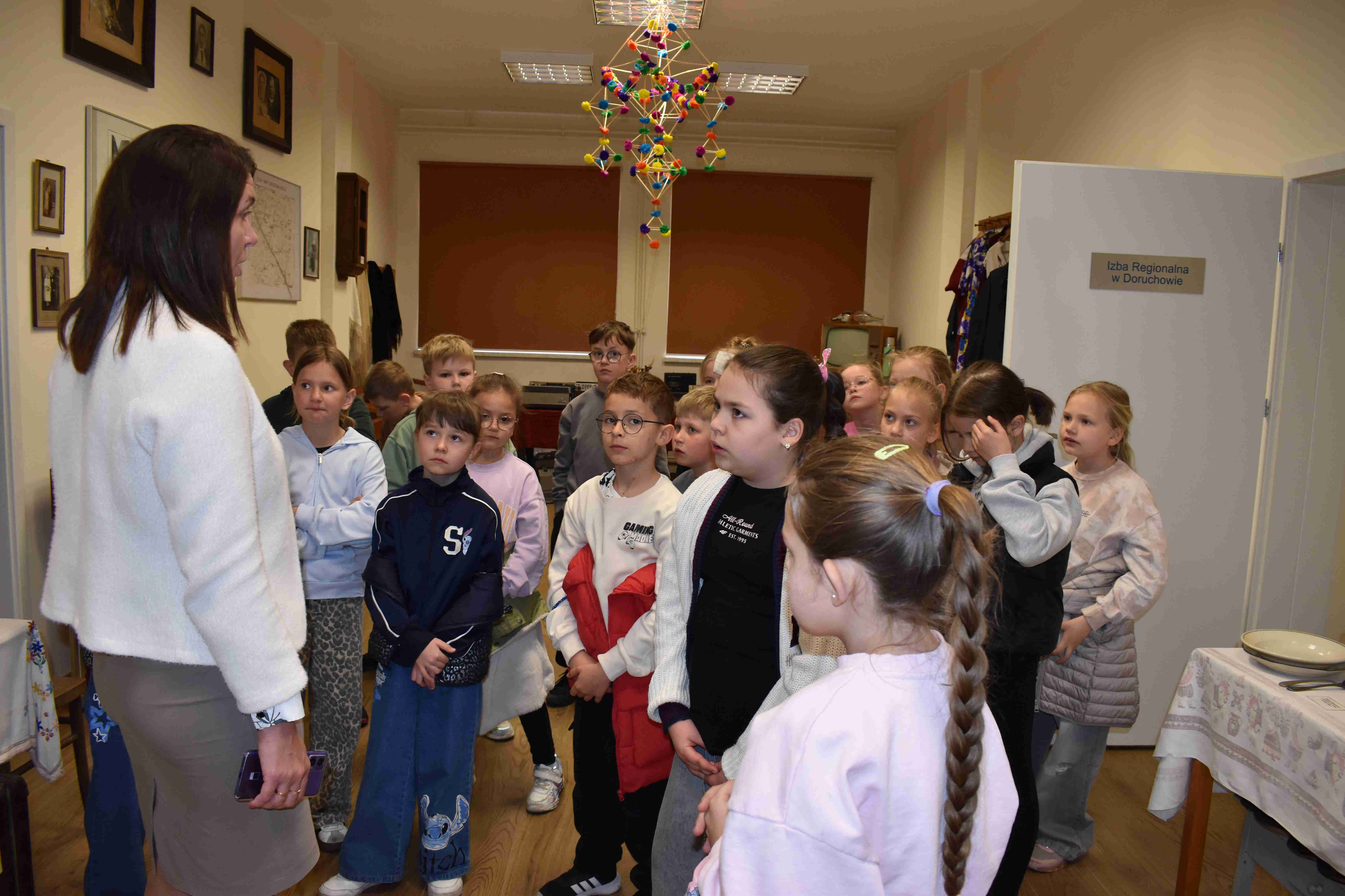 Uczniowie klas 2a i 2b mieli okazję uczestniczyć w wyjątkowej lekcji poza murami szkoły, odwiedzając Izbę Tradycji Ludowej w Doruchowie. Wyjście to było doskonałą okazją do poznania historii oraz tradycji naszego regionu w ciekawy i przystępny sposób. Podczas wizyty uczniowie zapoznali się z bogatą ekspozycją, obejmującą m.in. dawne narzędzia, stroje ludowe oraz przedmioty codziennego użytku. Duże zainteresowanie wzbudziły opowieści pani dyrektor Gok – u Agnieszki Tomaszewskiej, która w interesujący sposób przybliżyła życie mieszkańców Doruchowa na przestrzeni lat. Wyjście do Izby Tradycji Ludowej nie tylko poszerzyło wiedzę uczniów, ale również rozbudziło ich ciekawość oraz zachęciło do dalszego odkrywania lokalnej historii. To była wartościowa i inspirująca lekcja, którą z pewnością długo będą wspominać. Organizatorem i pomysłodawczynią całej akcji była pani Wiktoria Gola.